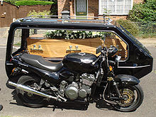 The motorcycle hearse has become popular and is often used during the funeral of motorcycle enthusiasts. This type of hearse is either a motorcycle with a special sidecar built to carry a casket or an urn at the side of the rider, or it is a trike that carries the casket behind the rider.